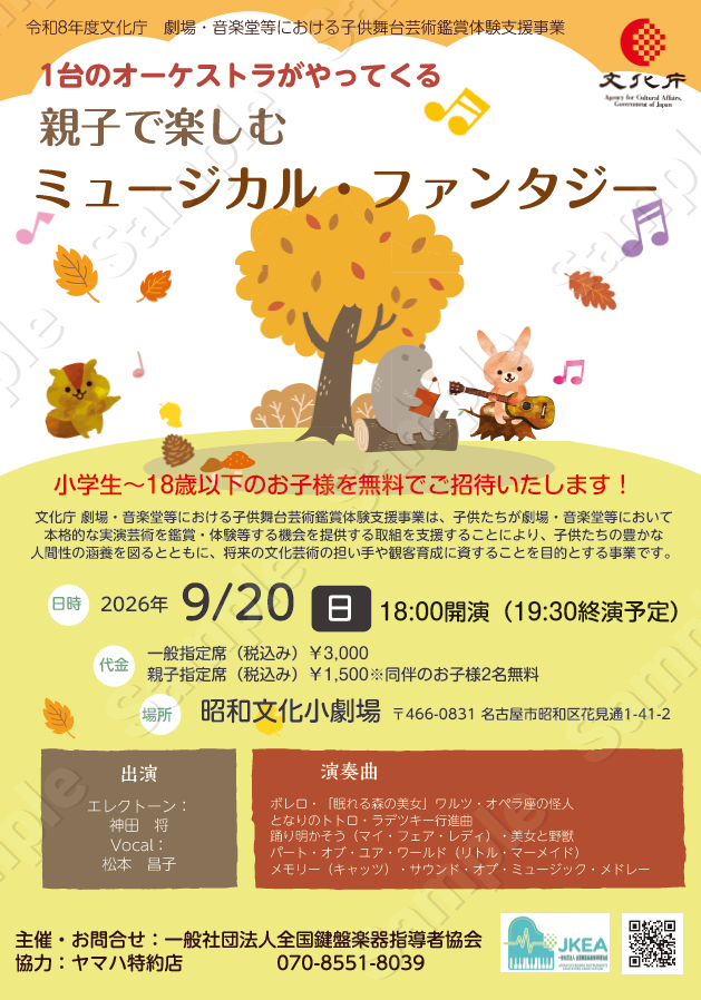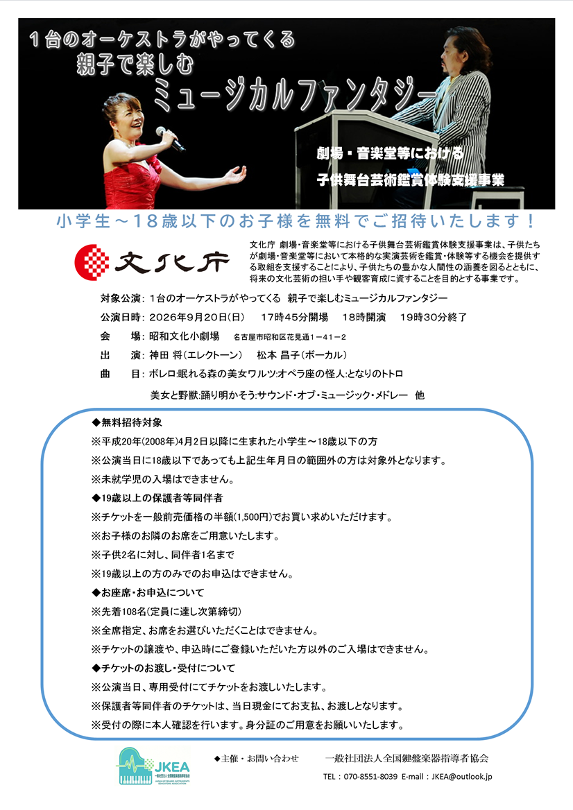 2026年9月20日(日) 神田将 松本昌子 1台のオーケストラがやってくる 親子で楽しむミュージカルファンタジー